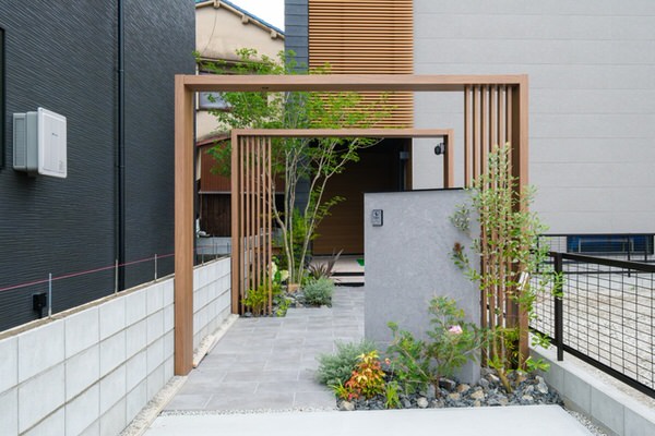 石畳風のタイルを敷いたり、足元に照明を配置したり、左右に木を植えたりすることで、まるで高級旅館に来たような雰囲気を演出できます。旗竿地ならではのアプローチ空間は、一般的な整形地ではなかなか実現できない、旗竿地最大の魅力のひとつです。
